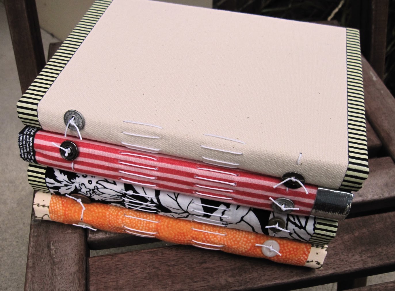 Made four journals so far today using the technique I described a few days ago for the covers and the binding technique I learned at Teesha Moore's class. Three more to go (for now). :)A message to me + you